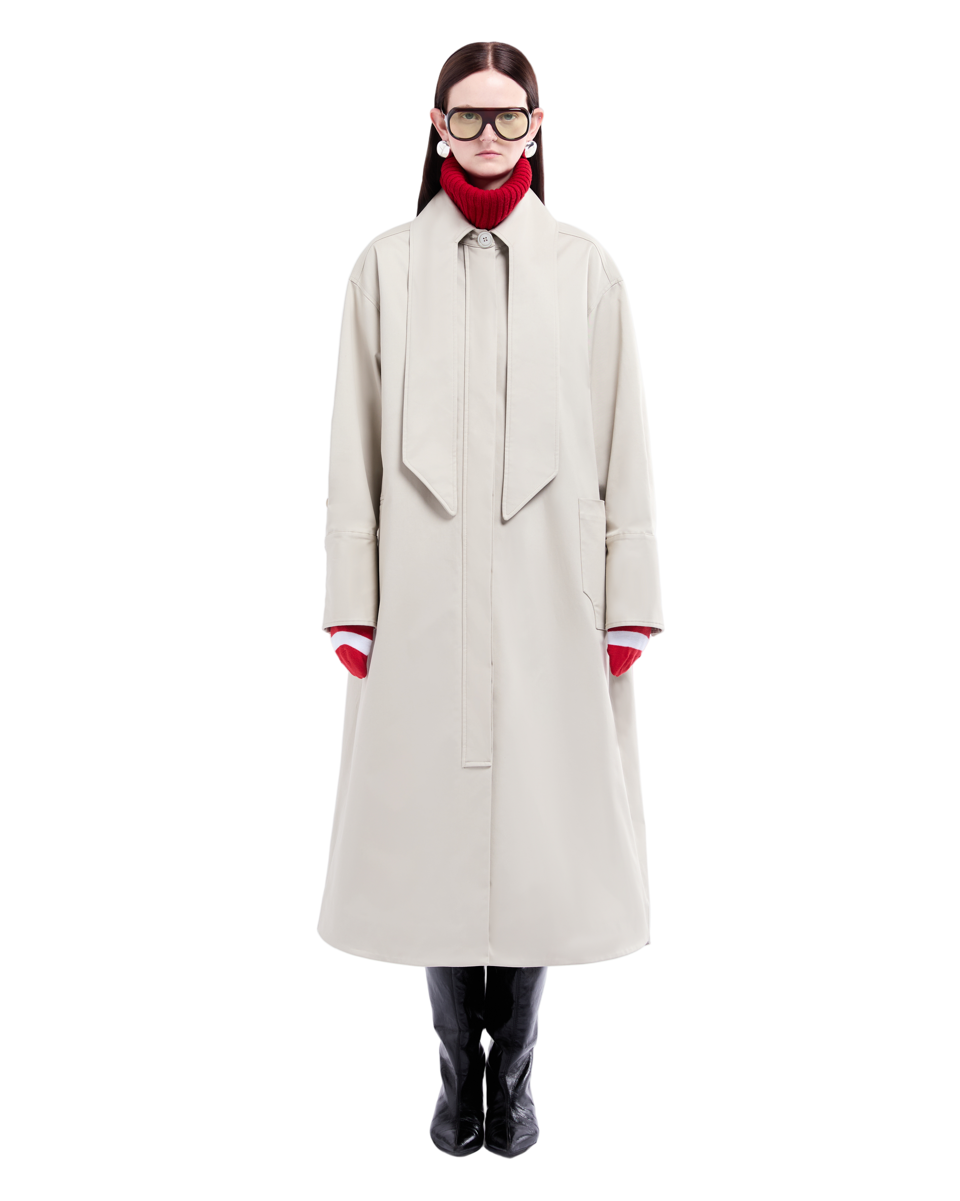 Oversized tailored coat in 98% cotton and 2% elastane with structured details and wide silhouette.
