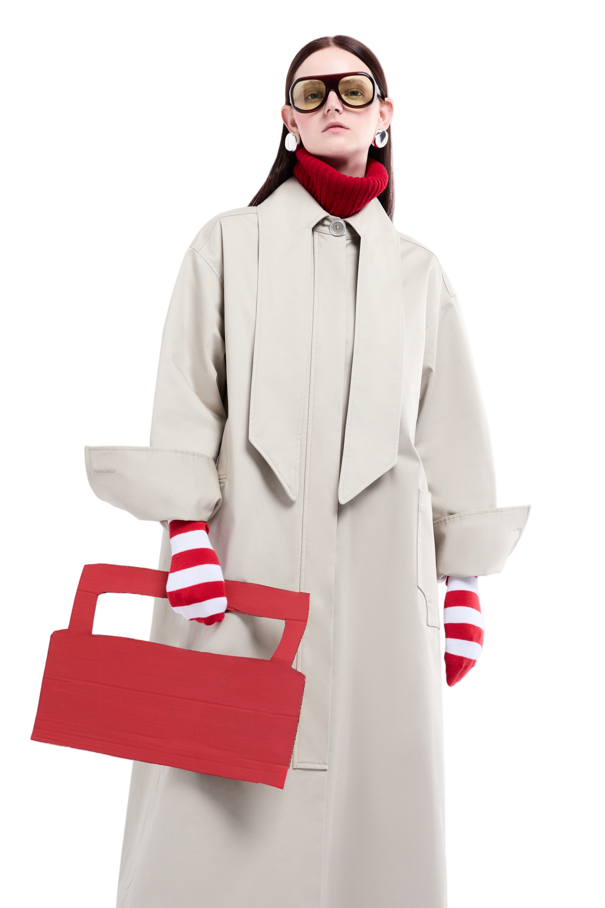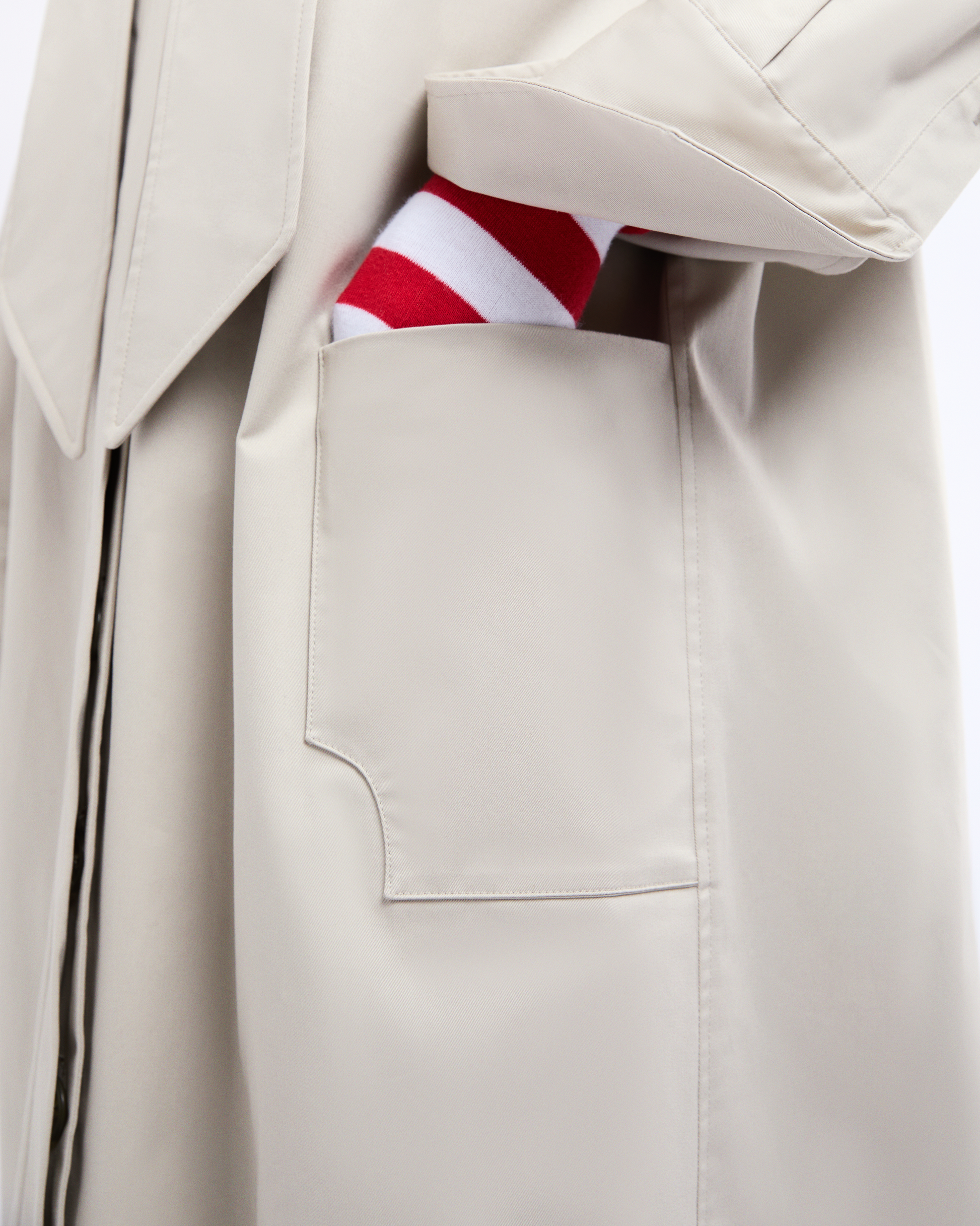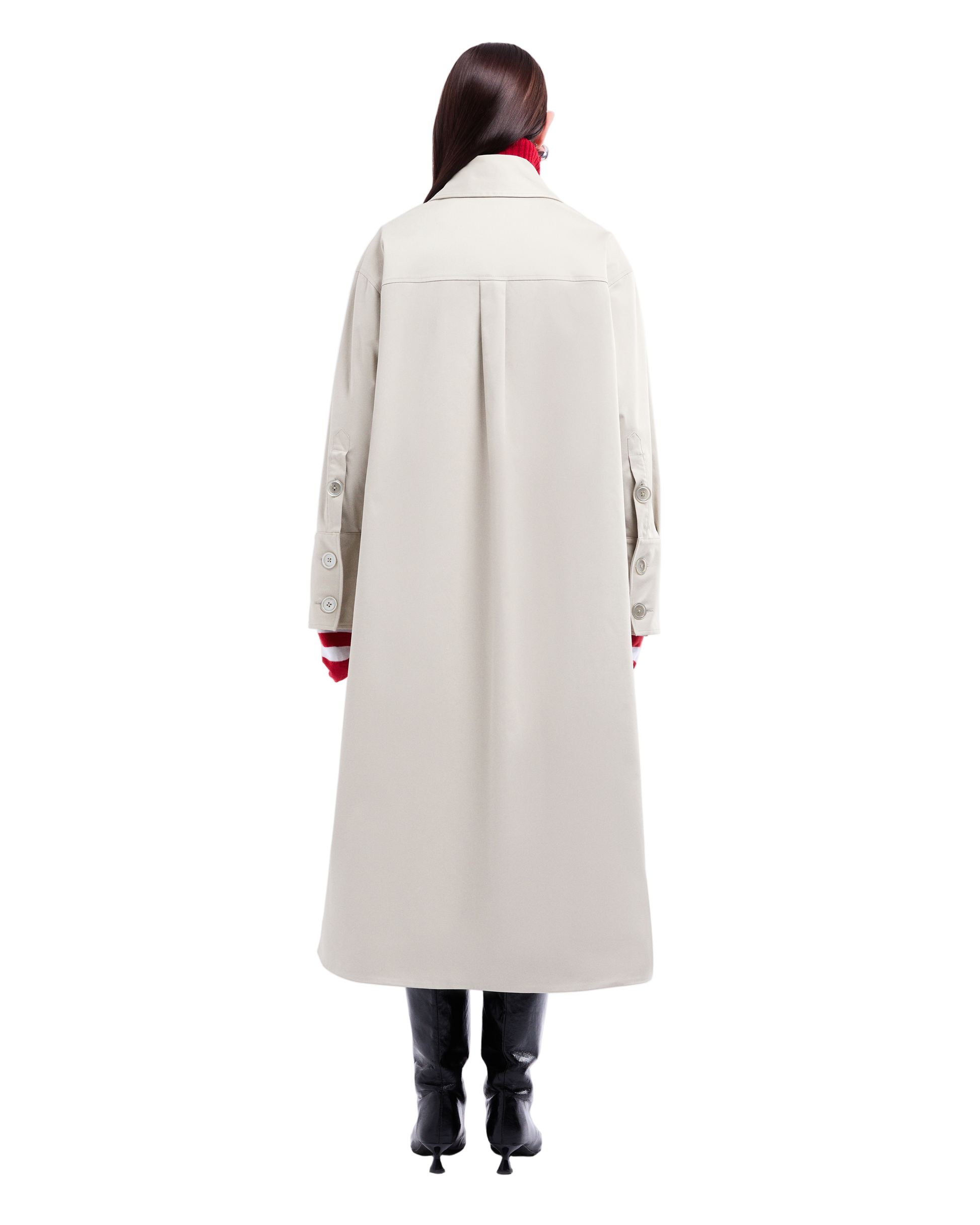 Oversized tailored coat in 98% cotton and 2% elastane with structured details and wide silhouette.
